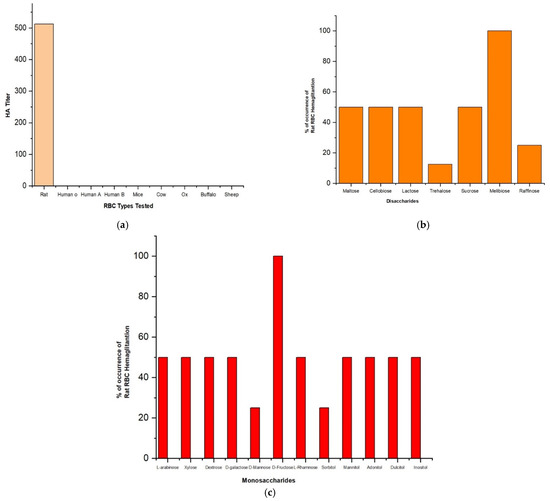 (a) Hemagglutination (HA) activity of LBP against various mammalian RBC types. (b,c) Carbohydrate inhibition assay on Rat-RBC hemagglutination activity of LBP.