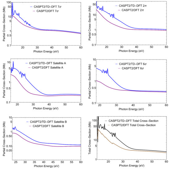 - Ponzi, A.; Quadri, N.; Angeli, C.; Decleva, P. Electron correlation effects in the photoionization of CO and isoelectronic diatomic molecules. Phys. Chem. Chem. Phys. 2019, 21, 1937–1951. [Google Scholar] [CrossRef]