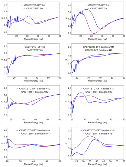 - Moitra, T.; Ponzi, A.; Koch, H.; Coriani, S.; Decleva, P. Accurate Description of Photoionization Dynamical Parameters. J. Phys. Chem. Lett. 2020, 11, 5330–5337. [Google Scholar] [CrossRef]