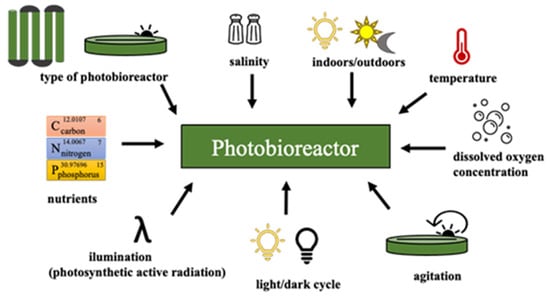 Schematic representation of the main variables in cultivation of microalgae biomass.