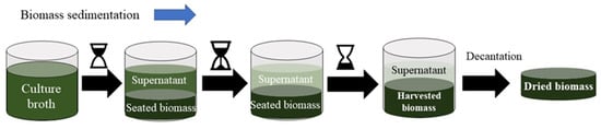 Schematic representation of the sedimentation technique to harvest microalgae biomass.