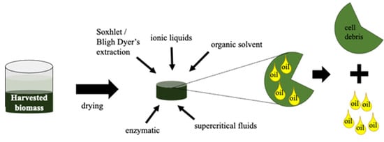 Schematic representation of oil extraction from microalgae biomass.