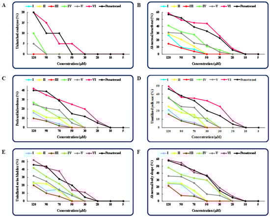 - Jarque, S.; Rubio-Brotons, M.; Ibarra, J.; Ordoñez, V.; Dyballa, S.; Miñana, R.; Terriente, J. Morphometric analysis of developing zebrafish embryos allows predicting teratogenicity modes of action in higher vertebrates. Reprod. Toxicol. 2020, 96, 337–348. [Google Scholar] [CrossRef]