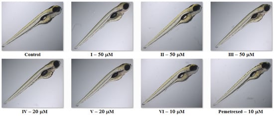 2.1. The Effect of the Tested Isopropylated Fused Azaisocytosine-Containing Congeners (I–VI) on Developing Zebrafish