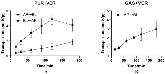3.2. Effects of Verapamil and Cyclosporin on Transport of PUR and GAS in Caco-2 Cell Model