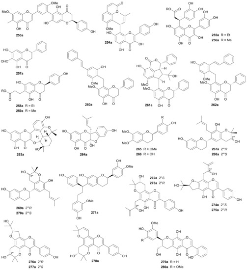 Compounds 227a/227b−230a/230b are a panel of quinazoline enantiomer pairs obtained from Peganum harmala in 2018 [125], Isatis indigotica in 2019 [86], I. indigotica in 2016 [98] and P. harmala in 2016 [126], respectively. Biogenetically, quinazoline alkaloids have been demonstrated to be derived from anthranilic acid [1].