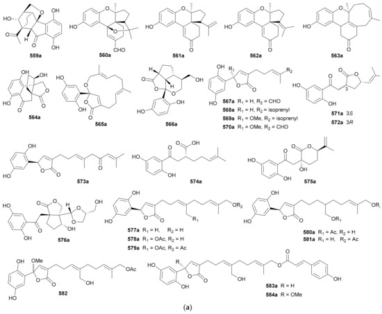 - Liu, H.; Tan, H.; Wang, W.; Zhang, W.; Chen, Y.; Li, S.; Liu, Z.; Li, H.; Zhang, W. Cytorhizophins A and B, benzophenone-hemiterpene adducts from the endophytic fungus Cytospora rhizophorae. Org. Chem. Front. 2019, 6, 591–596. [Google Scholar] [CrossRef]