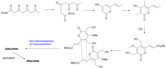 - Sang, X.N.; Chen, S.F.; Chen, G.; An, X.; Li, S.G.; Lu, X.J.; Zhao, D.; Bai, J.; Wang, H.F.; Pei, Y.H. Two pairs of enantiomeric α-pyrone dimers from the endophytic fungus Phoma sp. YN02-P-3. RSC Adv. 2017, 7, 1943–1946. [Google Scholar] [CrossRef]