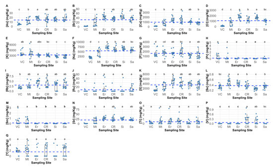 - Vieira, S.; Barrulas, P.; Chainho, P.; Dias, C.B.; Sroczyńska, K.; Adão, H. Spatial and Temporal Distribution of the Multi-Element Signatures of the Estuarine Non-Indigenous Bivalve Ruditapes Philippinarum. Biol. Trace Elem. Res. 2022, 200, 385–401. [Google Scholar] [CrossRef]