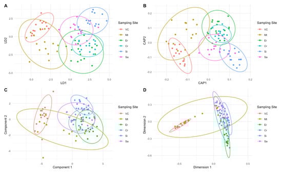 - Sanchez, G. Package ‘DiscriMiner’. 2013. Available online: https://citeseerx.ist.psu.edu/viewdoc/download?doi=10.1.1.408.5145&rep=rep1&type=pdf (accessed on 26 January 2022).