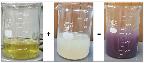 Yellow colored solution is Chloroauric acid, white colored solution is seed extract of Citrullus colocynthis, which when reacted then turned purple-colored, indicating the formation of AuNPs due to capping or reducing agents.