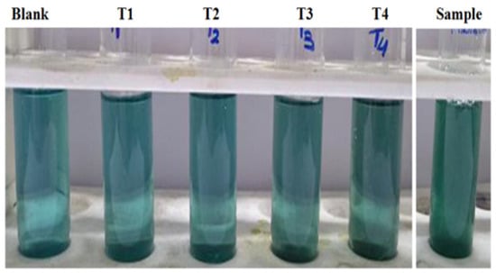 In this procedure, we have taken clean and dry test tubes. Standard solutions in the range of 0.1 to 2 mL (as shown in the table) in five different test tubes were pipetted out and the volume of each test tube was made up to 3 mL by adding DL. Test tubes were labeled with T1, T2, T3, T4 and T5 appropriately. In another test tube, labeled as empty, add 3 mL of DL. In the leftover test tubes, 100 μL of specimen extraction as well as 2.9 mL of DL was applied to each and labeled correspondingly. Then, 2 mL of DNS solution was applied to every test tube and then they were heated in boiling hot water in a steam bath for around 5–10 min and afterwards allowed to cool. Absorbance (OD) measurements of every test tube were collected at 540 nm using a spectrophotometer (Shimandzu, Tokyo, Japan). The outcome of multiple standard solutions thus generated has been used to draw calibration curves containing carbohydrates, and the content of carbohydrates in undetermined specimen extraction) was evaluated.