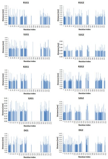 - Humphrey, W.; Dalke, A.; Schulten, K. VMD: Visual Molecular Dynamics. J. Mol. Graph. 1996, 14, 33–38. [Google Scholar] [CrossRef]