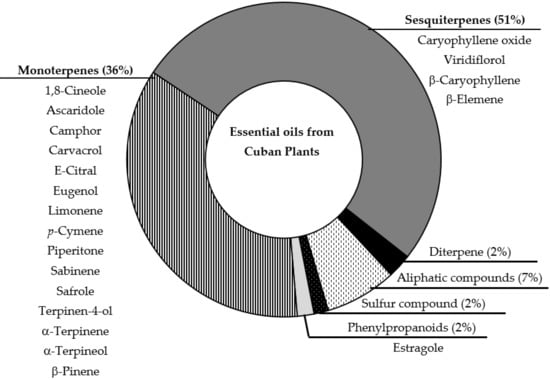 - Monzote, L.; García, J.; González, R.; Scotti, M.T.; Setzer, W.N. Bioactive essential oils from Cuban plants: An inspiration to drug development. Plants 2021, 10, 2515. [Google Scholar] [CrossRef]