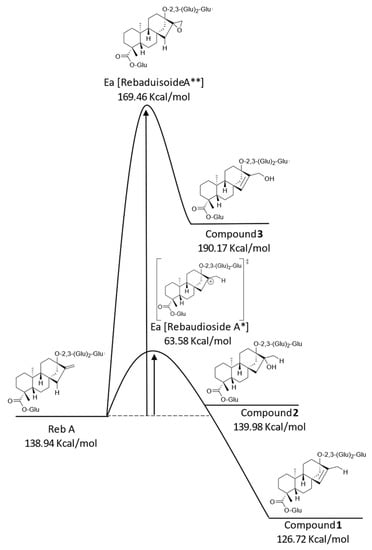 Potential energy diagram of Reb A and degradation compounds 1–3.