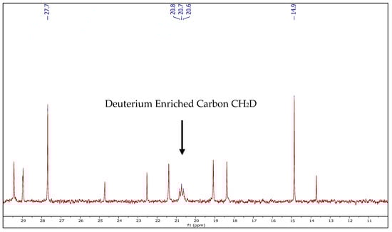 13C NMR analysis of deuterated rebaudioside A degradation compound 2d highlighting triplet on C17.