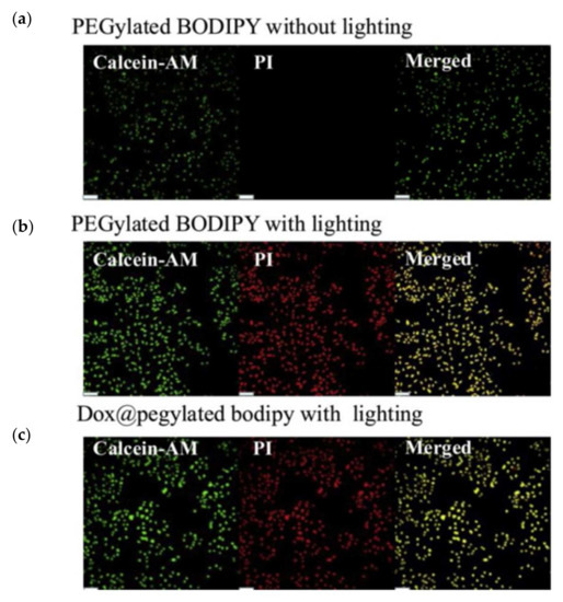 - Ruan, Z.; Zhao, Y.; Yuan, P.; Liu, L.; Wang, Y.; Yan, L. PEG conjugated BODIPY-Br2 as macro-photosensitizer for efficient imaging-guided photodynamic therapy. J. Mater. Chem. B 2018, 6, 753–762. [Google Scholar] [CrossRef] [PubMed]