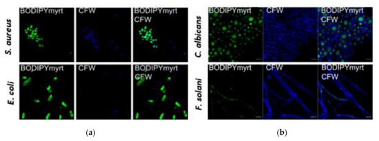 - Krajcovicova, S.; Stankova, J.; Dzubak, P.; Hajduch, M.; Soural, M.; Urban, M. A synthetic approach for the rapid preparation of BODIPY conjugates and their use in imaging of cellular drug uptake and distribution. Chemistry 2018, 24, 4957–4966. [Google Scholar] [CrossRef]