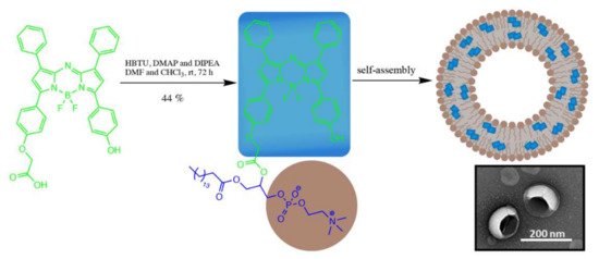 - Zhang, T.; Zhang, W.; Zheng, M.; Xie, Z. Near-infrared BODIPY-paclitaxel conjugates assembling organic nanoparticles for chemotherapy and bioimaging. J. Colloid Interface Sci. 2018, 514, 584–591. [Google Scholar] [CrossRef]