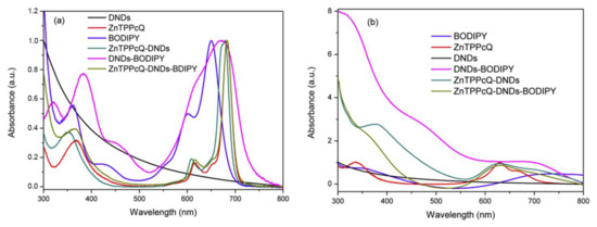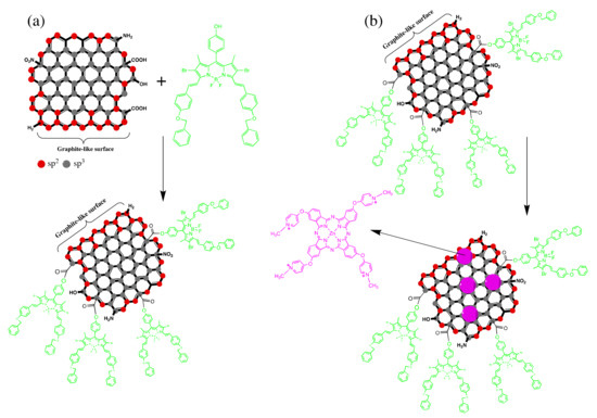 - Matshitse, R.; Ngoy, B.P.; Managa, M.; Mack, J.; Nyokong, T. Photophysical properties and photodynamic therapy activities of detonated nanodiamonds-BODIPY-phthalocyanines nanoassemblies. Photodiagnosis Photodyn. Ther. 2019, 26, 101–110. [Google Scholar] [CrossRef]