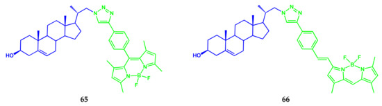 A conjugate 12 based on monoaminostyryl-substituted BODIPY (Scheme 7) was presented by the authors of the article [12].