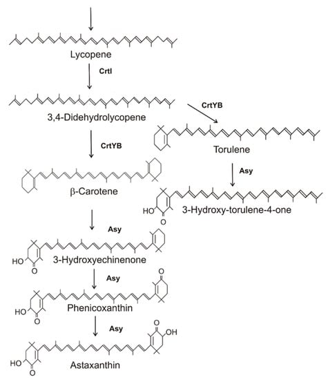 111. Jin, J.; Wang, Y.; Yao, M.; Gu, X.; Li, B.; Liu, H.; Ding, M.; Xiao, W.; Yuan, Y. Astaxanthin overproduction in yeast by strain engineering and new gene target uncovering. Biotechnol. Biofuels 2018, 11, 230. [Google Scholar] [CrossRef]