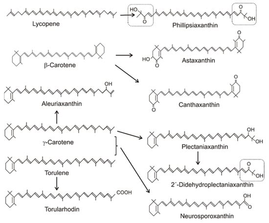3. Sandmann, G.; Misawa, N. Fungal carotenoids. In The Mycota X. Industrial Applications; Osiewacz, H.D., Ed.; Springer: Berlin, Germany, 2002; pp. 247–262. [Google Scholar]