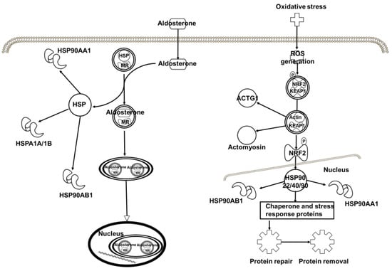 Interestingly, the baicalin-binding proteins, in particular HSPs, are also associated with the aldosterone signaling in epithelial cells and the NRF2-mediated oxidative stress response (Figure 8), indicating that baicalin processes an antioxidant function, which is supported by the interaction of baicalin with Prx-IV (vide supra).