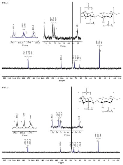 - Kono, H. Chemical shift assignment of the complicated monomers comprising cellulose acetate by two-dimensional NMR spectroscopy. Carbohydr. Res. 2013, 375, 136–144. [Google Scholar] [CrossRef]