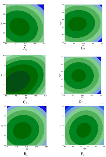 YZOI = −129 + 3.1 GC + 3.7 UC + 26.6 MpH + 3.5 FT − 3.1 GC*GC − 39.8 UC*UC − 2.09 MpH*MpH − 4.6 FT*FT − 8.3 GC*UC + 1.1 GC*MpH + 2.4 GC*FT+ −5.6 UC*MpH + 6.7 UC*FT + 2.50 MpH*FT