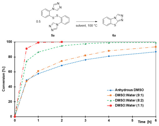 Effect of water on the conversion of disulfide 5a to heterocycle 6a.