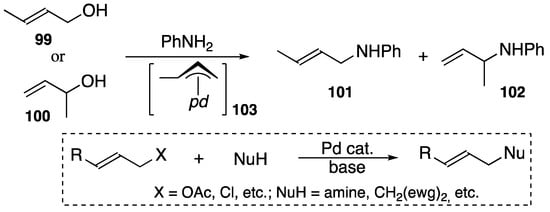 - Ozawa, F.; Okamoto, H.; Kawagishi, S.; Yamamoto, S.; Minami, T.; Yoshifuji, M. (π-Allyl)palladium complexes bearing diphosphinidenecyclobutene ligands (DPCB): Highly active catalysts for direct conversion of allylic alcohols. J. Am. Chem. Soc. 2002, 124, 10968–10969. [Google Scholar] [CrossRef]