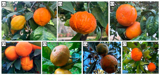- Ferrer, V.; Costantino, G.; Paoli, M.; Paymal, N.; Quinton, C.; Ollitrault, P.; Tomi, F.; Luro, F. Intercultivar diversity of sour orange (Citrus aurantium L.) based on genetic markers, phenotypic characteristics, aromatic compounds and sensorial analysis. Agronomy 2021, 11, 1084. [Google Scholar] [CrossRef]