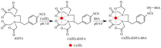 Synthesis scheme of the Cr(III)-iEDTA-BSA via the isothiocyanate method.