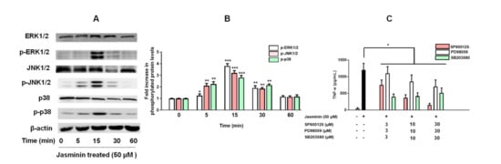 2.4. Phosphorylation of MAPKs by Jasminin to Induce TNF-α Production