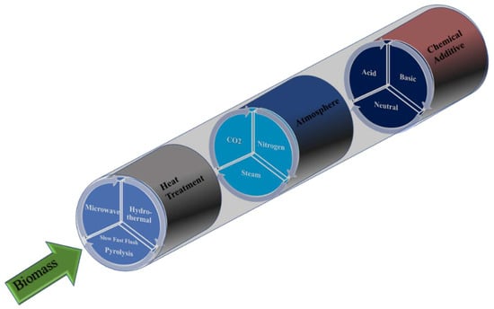 Thus, the preparation of activated carbons stands out for the wide variety of procedures used. Once the precursor is known/selected, three main preparation variables can be highlighted (summarized in Figure 1):