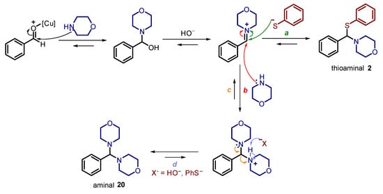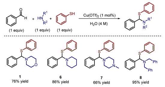 3.2. General Procedure for Cu(II)-Catalyzed Preparation of Thioaminals in Water
