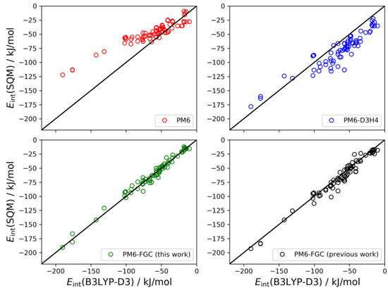 Linear correlations obtained for the diglycine dimer. For comparison, we include the PM6-FGC results evaluated with our previous corrections [21].