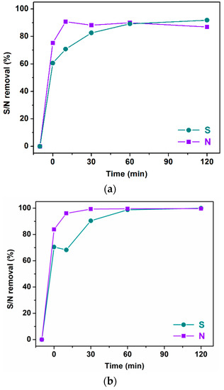 2.2. Catalytic Desulfurization/Denitrogenation Studies