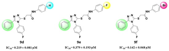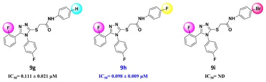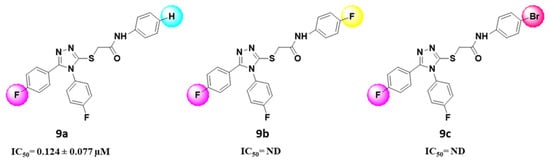 3.1.4. 2-(4,5-Bis(4-fluorophenyl)-4H-1,2,4-triazol-3-ylthio)-N-(4-bromophenyl) Acetamide (9c)