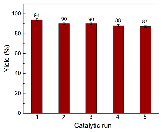 Iron oxide is an FDA-approved agent significantly applied in nanomedicine [5]. The iron oxide nanomaterials have a diameter of 15–100 nm composed of magnetite or maghemite and have shown great biomedical applications as contrast materials, drug carriers, and thermal-based therapeutics [18]. Iron oxide nanoparticles are under attention because of their excellent properties in polymer-based catalysts [19,20]. This is because iron oxide nanoparticles possess a large surface area for substrate molecules. Furthermore, after the completion of the reactions, the magnetic catalysts can be separated easily from the solution using an external magnet. Additionally, magnetic catalysts can be reused up to numerous runs almost without loss of catalytic activity [21,22].