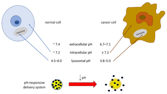 - He, X.; Li, J.; An, S.; Jiang, C. pH-sensitive drug-delivery systems for tumor targeting. Ther. Deliv. 2013, 4, 1499–1510. [Google Scholar] [CrossRef] [PubMed]