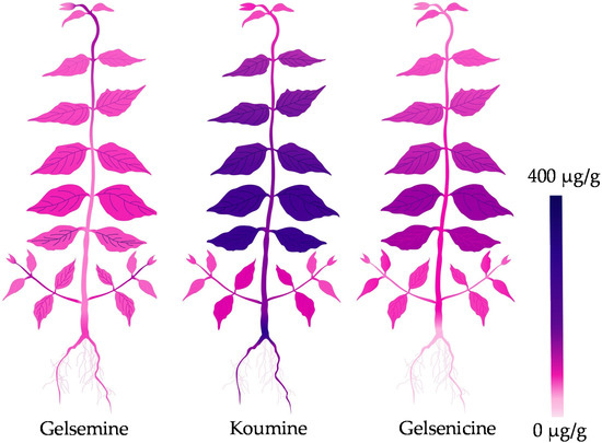 Diagrammatic distribution of three alkaloids in G. elegans.