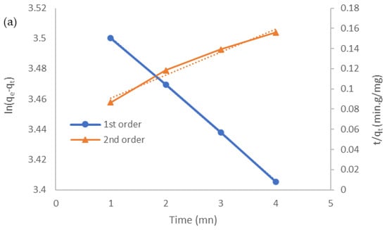 3.2.1. Effect of Adsorption Contact Time and Kinetic Models