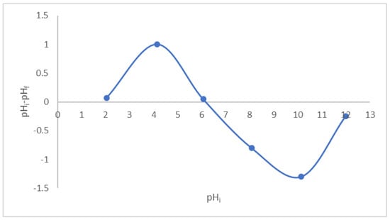 The LCF surface charge was performed using the salt addition method by specifying the point of zero charges (pHpzc). Five solutions of 0.1 M NaCl with different pH values were adjusted between 2 and 12 using 0.1 M NaOH and 0.1 M HCl. A 0.25 g amount of LCF was mixed with 25 mL synthesis solution with shaking at 200 rpm for 24 h at ambient temperature. After this duration of shaking, the final pH values of the mixture were measured. Finally, the results of (pHi-pHf) were drawn against the pHi to estimate the pHPZC [].
