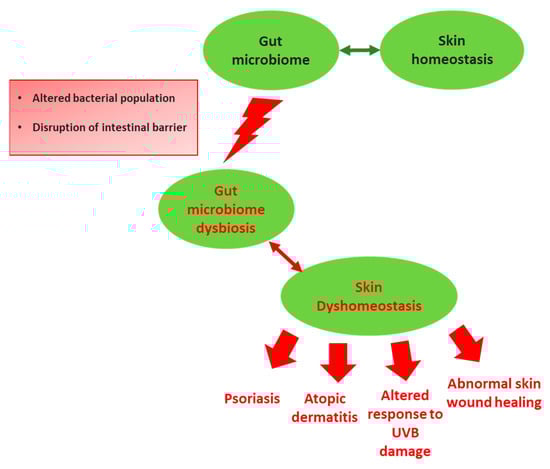 - Salem, I.; Ramser, A.; Isham, N.; Ghannoum, M.A. The Gut Microbiome as a Major Regulator of the Gut-Skin Axis. Front. Microbiol. 2018, 10, 1459. [Google Scholar] [CrossRef] [PubMed] [Green Version]