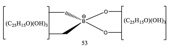 - Miller, D.S.; Leffler, J.E. Absorption spectra of triarylborons. J. Phys. Chem. 1970, 74, 2571. [Google Scholar] [CrossRef]
