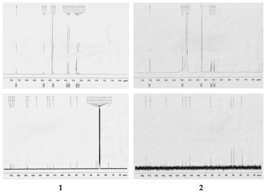 1H-NMR and 13 C-NMR spectra of compounds 1 and 2.