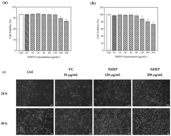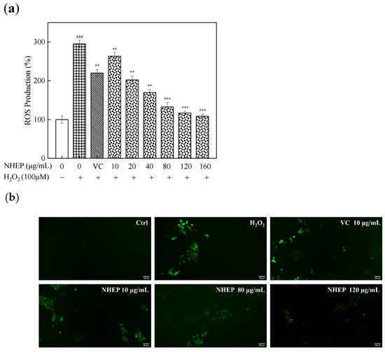2.6.2. Effects of NHEP on the ROS Level of HaCaT Cells with Stimulation of H2O2