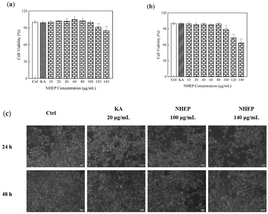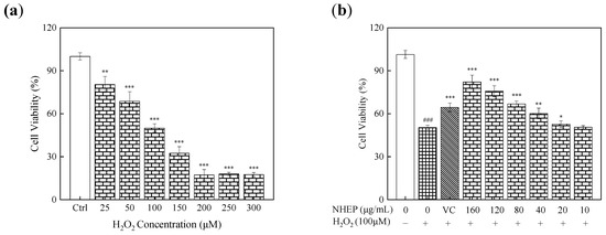 2.6.1. Effects of NHEP and H2O2 on Cell Viability of HaCaT Cells